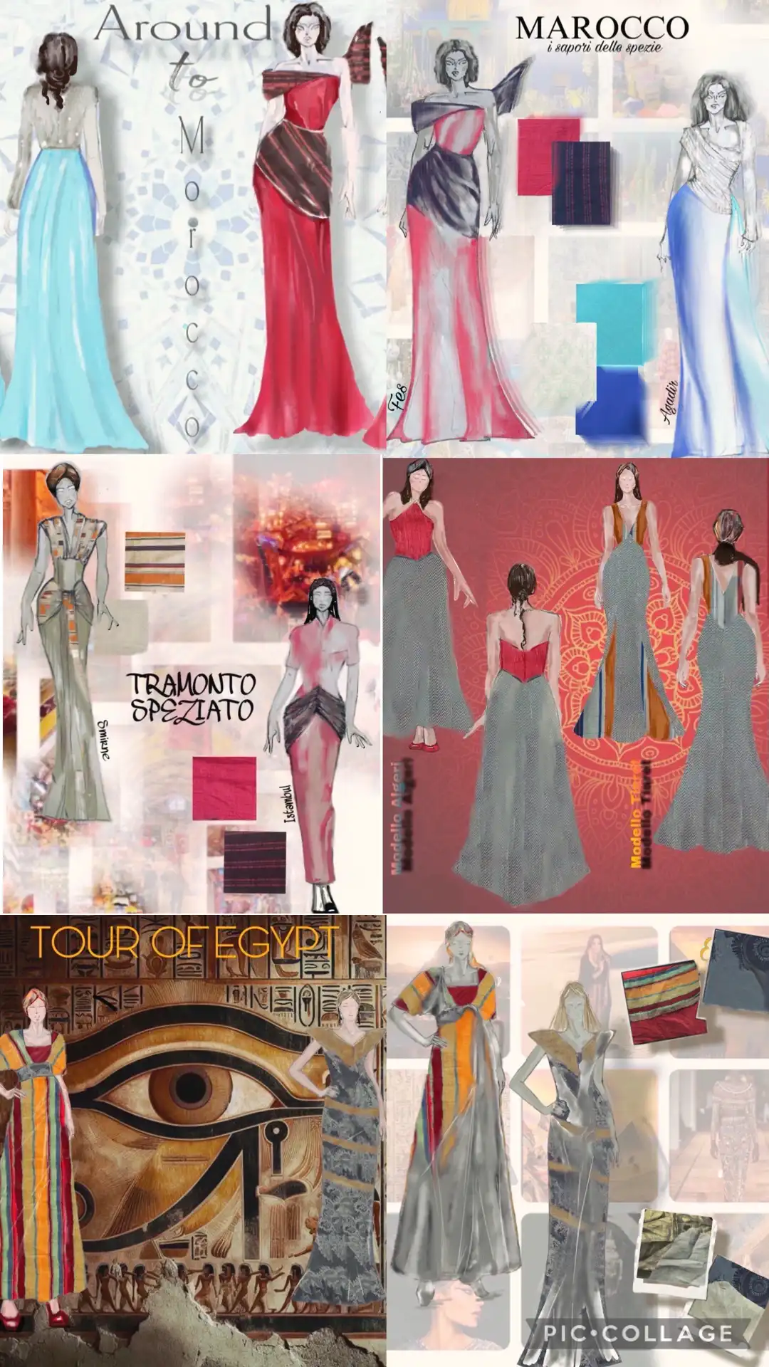 Le classi 3N e 3TM dell’istituto Cellini-Tornabuoni, in collaborazione con la classe 4C dell’istituto Buzzi di Prato che ha prodotto e fornito i pregiati tessuti, hanno realizzato una collezione di abiti, i cui colori e forme hanno fatto assaporare il profumo delle suggestioni egiziane, turche, algerine e marocchine, con spezie ed essenze che gli eleganti e variopinti drappeggi, impreziositi da gioielli e strass, hanno suggerito al pubblico presente il 4 giugno all’evento ospitato da un’istituzione storica come il Museo del Tessuto di Prato.